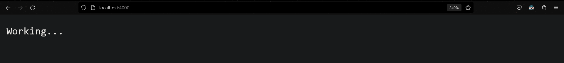index.jsfileconst http = require("http"); const PORT = 4000; const HOST = "localhost"; const server = http.createServer((request, response) => { response.end("Working..."); }); server.listen(PORT, HOST, () => { console.log(`Server is working on http://${HOST}:${PORT}`); }); -