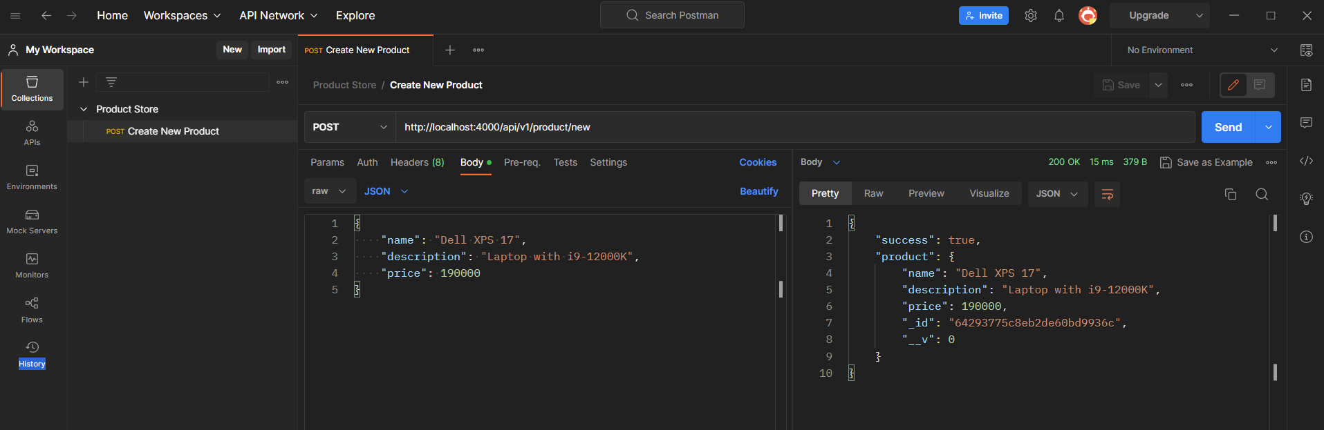 const Product = new mongoose.model("Product", productSchema);- Reading the path to receive data, from POST() to create new product